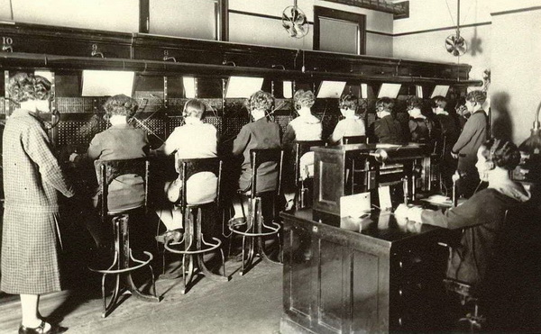 В 1881 году открываются первые телефонные станции. Коммутация на них велась вручную, с помощью штекеров, которыми ловко управляли «телефонные барышни».